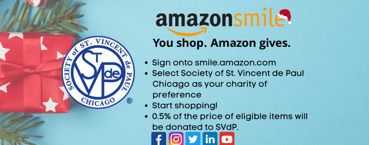 If you already use Amazon.com for online shopping, you can link your account to AmazonSmile and support SVdP Chicago!You will make a .5 percent donation with every Amazon purchase by using AmazonSmile.